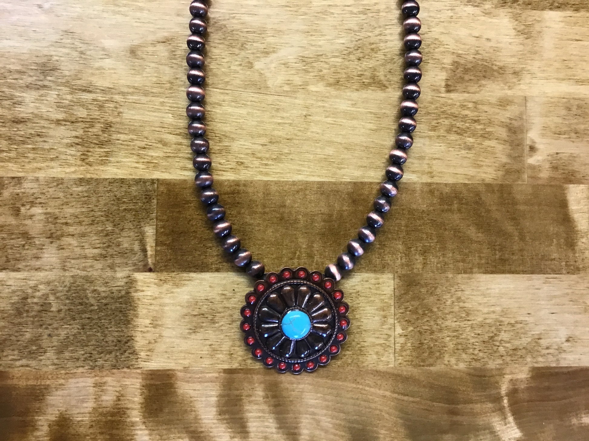 These Navajo Pearls with turquois pendent are the perfect accessory!