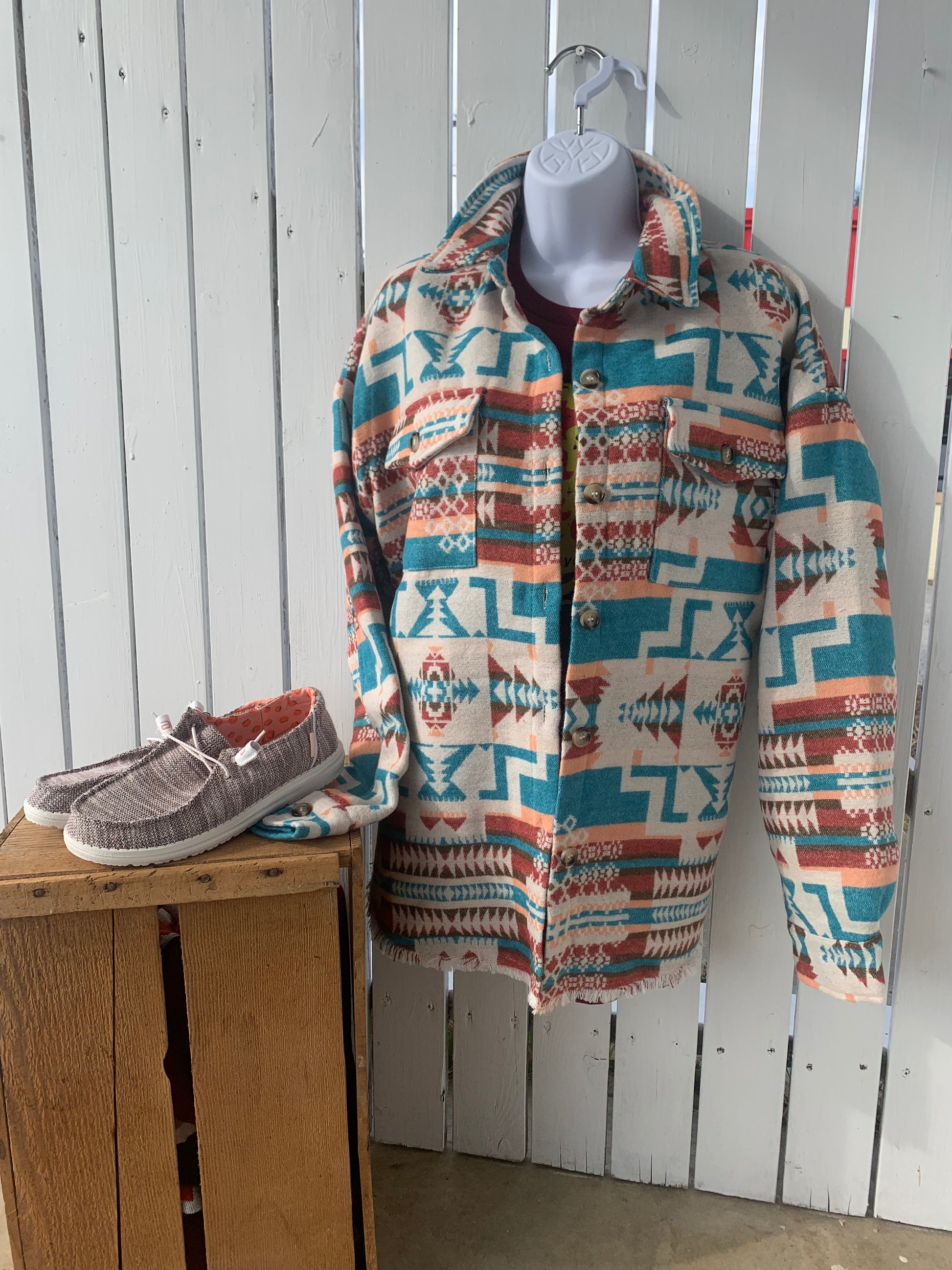 Blue B Jacquard Aztec Shacket -Teal