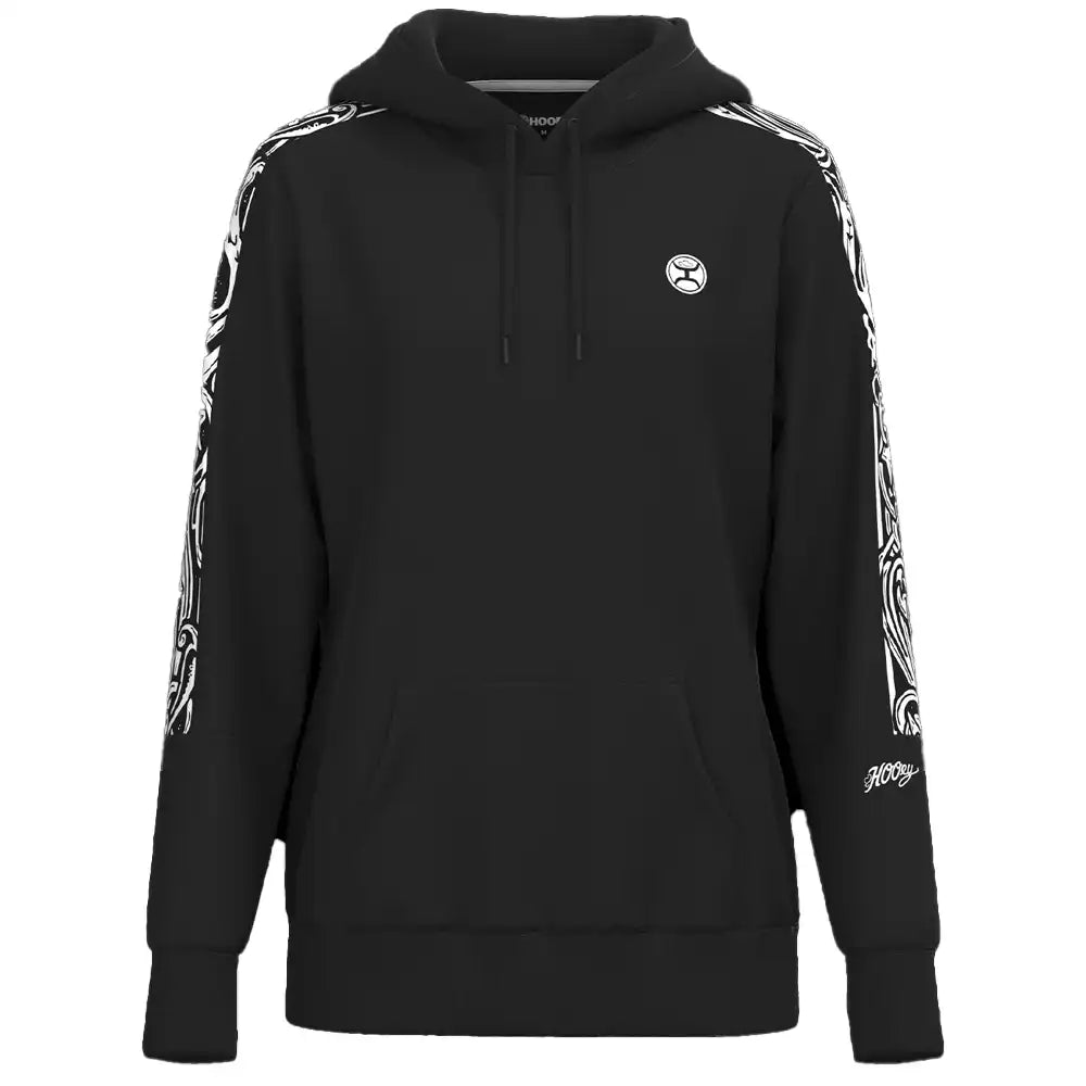 Canyon, Ladies Black Hoody with White Rodeo Star Filigree Pattern on Sleeves and Hood