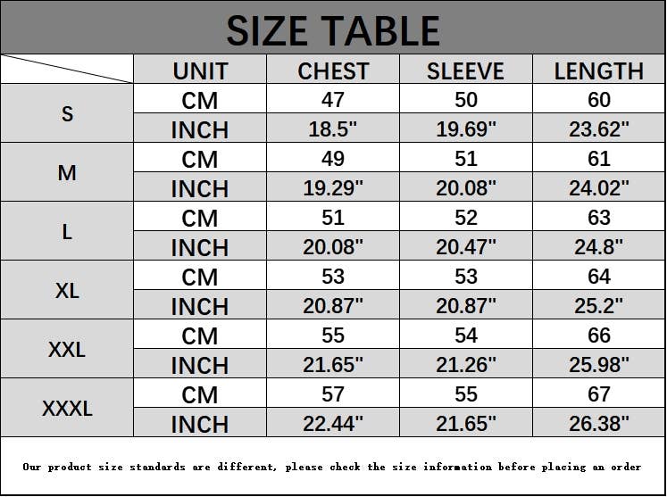 SIZES : S,M,L,XL,XXL,XXXL