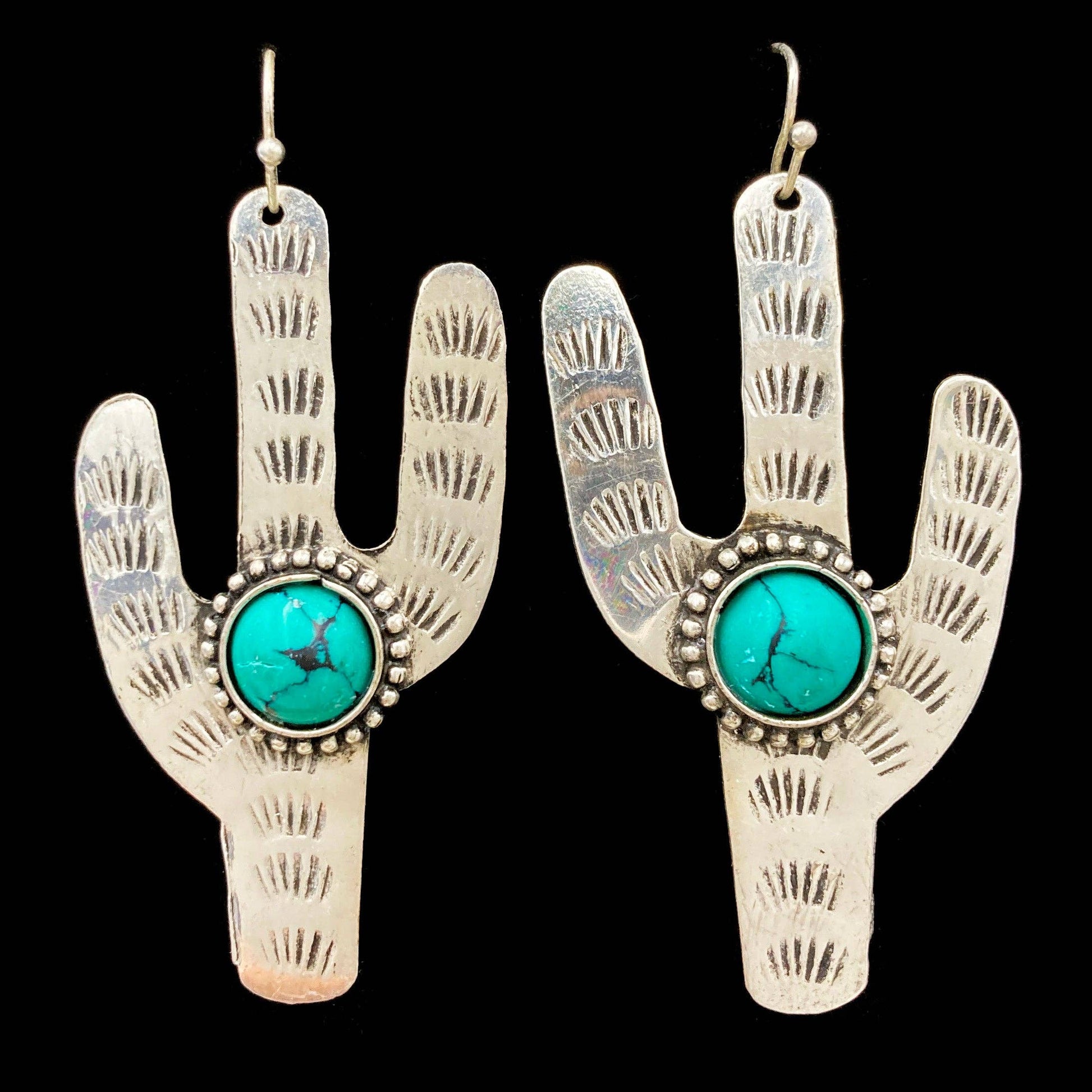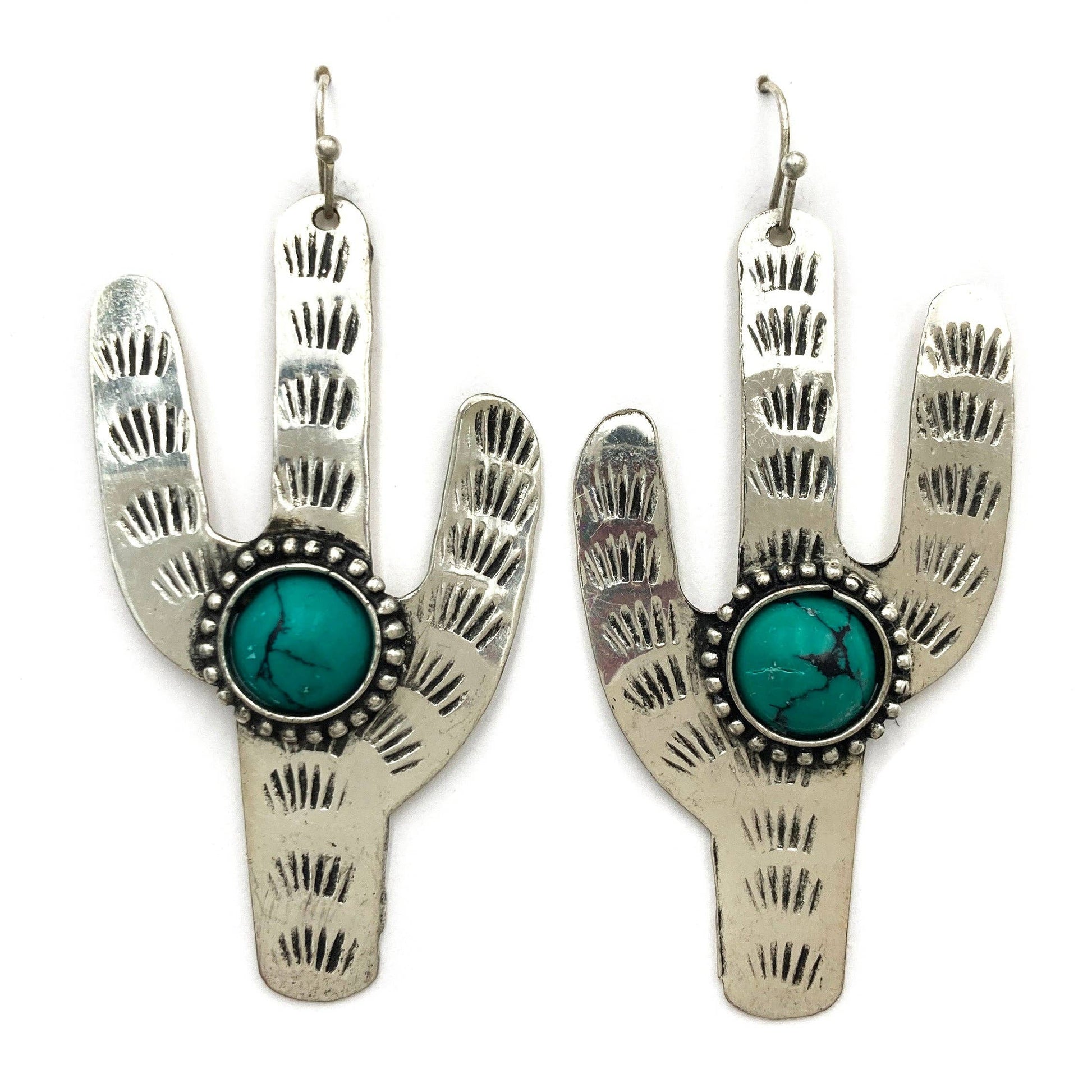 Step into the rustic charm of the west with Lunar Deer's Large Metal Cactus Turquoise Stone Earrings. These dangle earrings beautifully capture the spirit of traditional mom-and-pop shops with their unique cactus design and turquoise stone embellishments. Each piece tells a story, adding a human touch to your jewelry collection. Experience the friendly and warm atmosphere of a quaint western store with every wear. These earrings are not just accessories, they are a journey to the heart of the west.