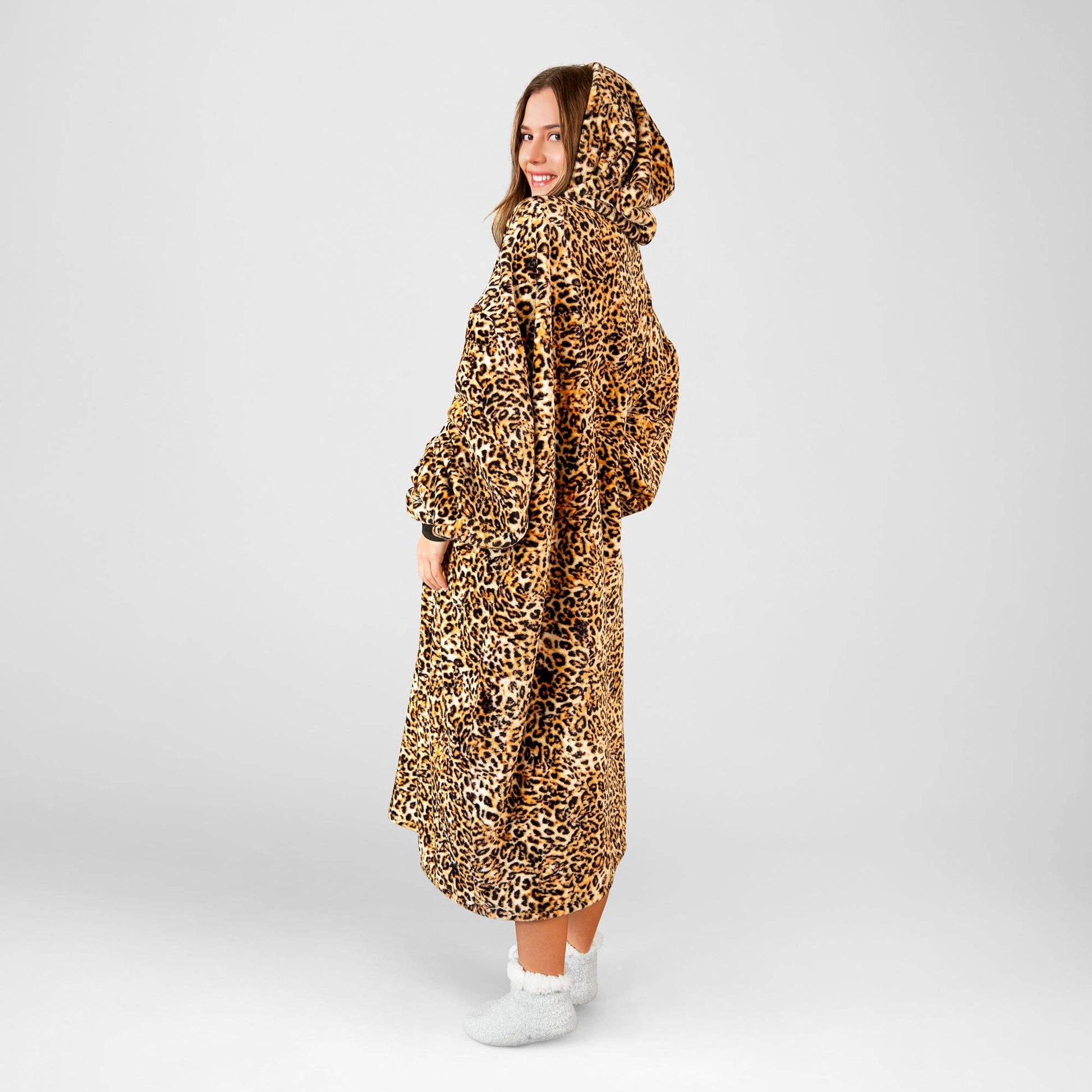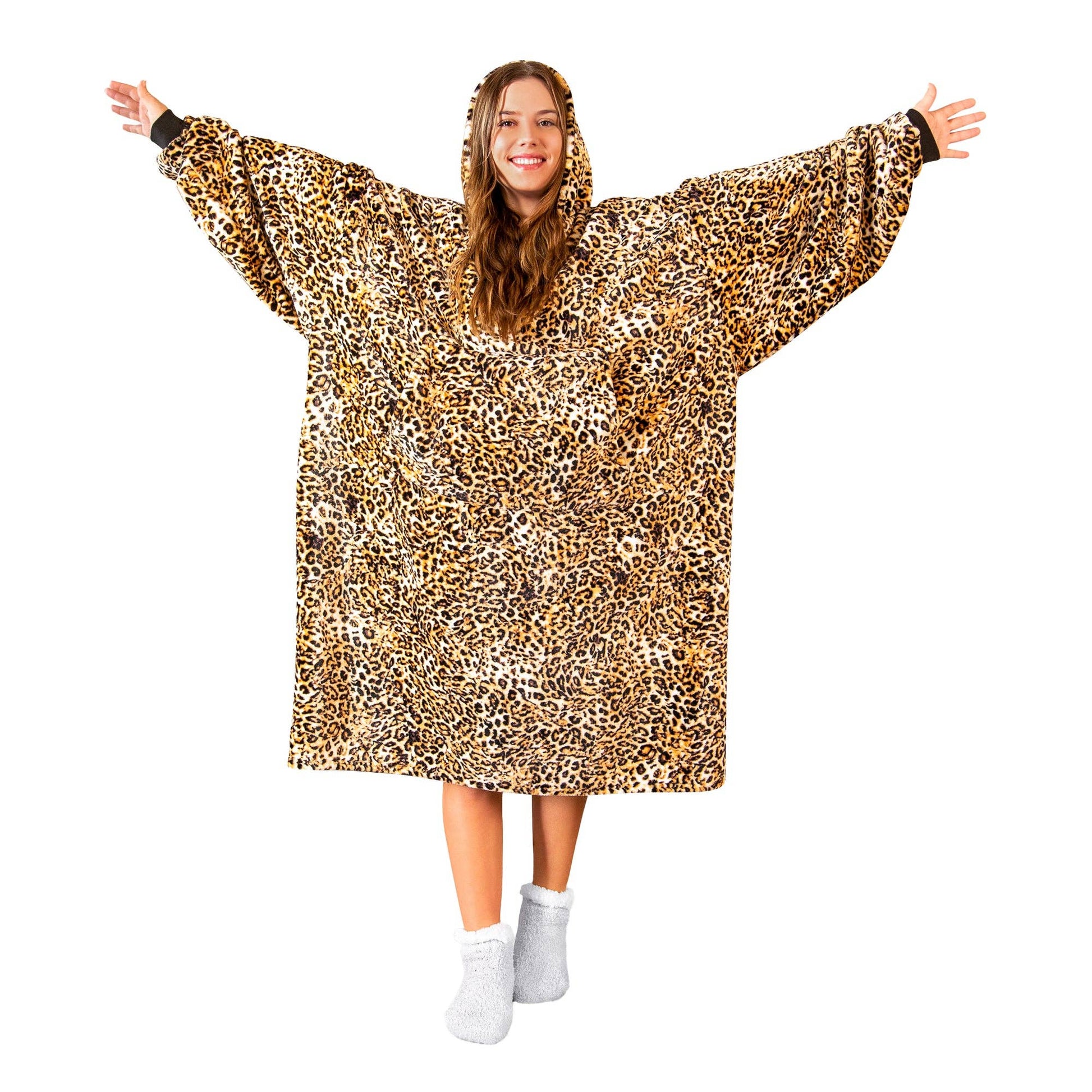 Hate having to get up and leave the warmth of a throw behind? Now you can wear the same super soft plush patterns you love while staying warm throughout the house! These hooded blankets are extra large to fit everyone with elastic sleeve cuffs and a kangaroo pocket.